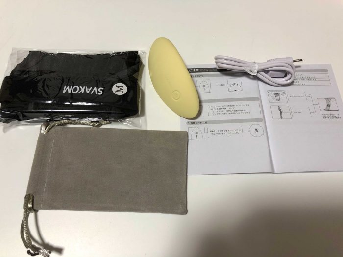 このアダルトグッズを設置することができる女性の「下着パンツ」と充電器、説明書、収納ポーチです。